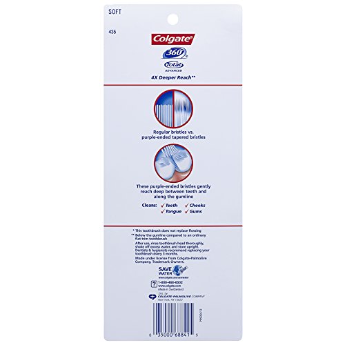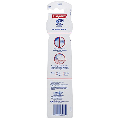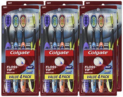 Colgate 360 Total Advanced Floss-Tip Slim Toothbrush, Soft (4 Pack)
