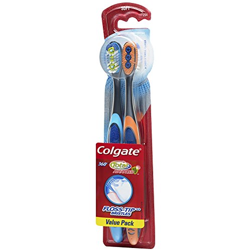Colgate 360 Total Advanced Floss-Tip Slim Toothbrush, Soft - 2 Count (6 Pack)