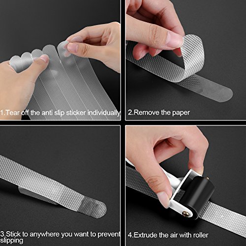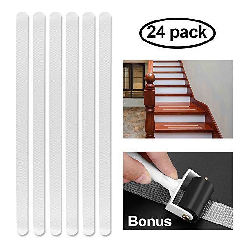 Adhesive Bath Treads, 24 pcs Non-Slip Clear Adhesive Stair Treads Anti Slip Shower Safety Strips with Install Roller Toll for Tubs and Floors- by Yblntek