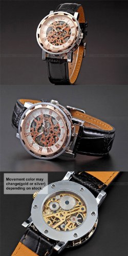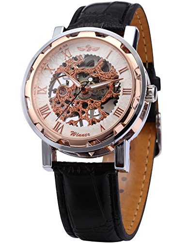 -. Title : WINNER (ウィナー) スケルトン ダイアル メンズ 手巻き機械式 ブラックレザーバンド リストウォッチ PMW070