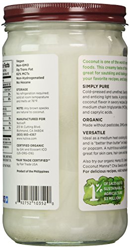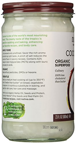 -. Feature : Organic Virgin Coconut Oil (Glass Jar) by Nutiva is one of the world's most nourishing superfoods / Organic and non-GMO coconut oil / 100% less cholesterol than butter / No refrigeration required