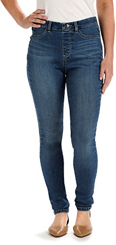 Jean legging in stretch denim featuring non-restrictive waistband and clean back pockets