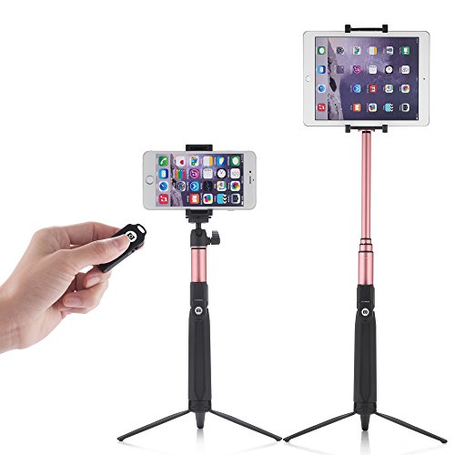 HOLDS YOUR PHONE, IPAD, TABLET, KINDLE, DIGITAL CAMERA: Comes with 2 interchangeable holders. Now you can use our mobile selfie stick and tripod stand with your Android, iPhone 6, 6 plus, 7, 7 plus, iPad, Tablet, Camera and Kindle. Take photos, make videos or even watch a movie on your tablet/iPad by using our tripod stand whilst chilling at home on the sofa. Create awesome action packed videos on your iPad and read a book on your Kindle without getting hand cramps. Pretty neat!