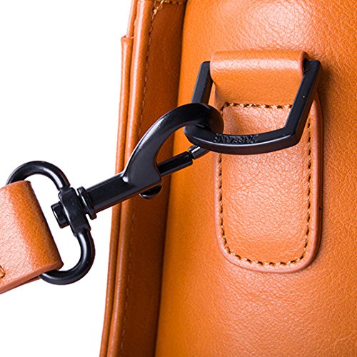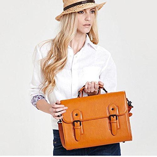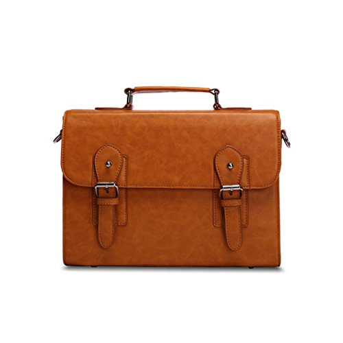 4.Advantage:Double buckles briefcase restoring ancient ways. The whole package shape by hand. Leather thimble handle. Strong magnetic buckle opening and closing. It can put 13 inch laptop. With mobile phone bag, document bag, pen pockets and zipper bag, practical receive. The bottom rivet, waterproof and dustproof. With removable shoulder straps. Double color optional.