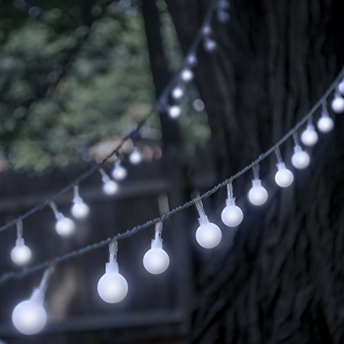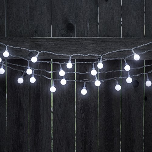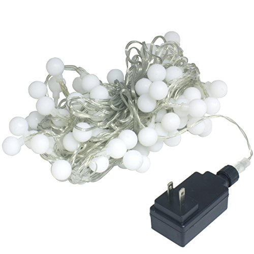 - ELEGANT GLOBE FEATURE—100 LED globe shaped bulbs with an elegant frosted white finish on a transparent string—Excellent illumination for a warm atmosphere and festive sophistication