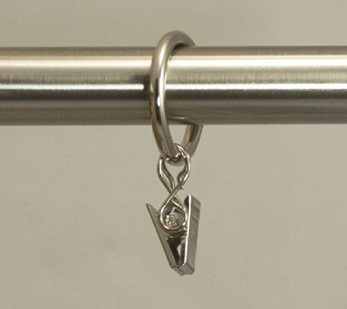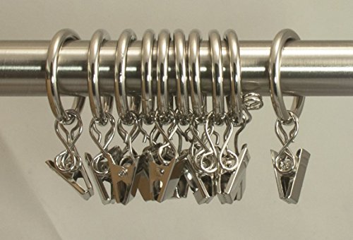 Urbanest Set of 40 1-inch Metal Curtain Rings with Clips and Eyelets, Fits Up To 3/4 Inch Rod, Brushed Steel
