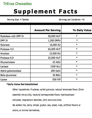-. Binding : Health and Beauty -. Brand : INEARDI -. EAN : 0885242982259 -. Feature : TriEnza is the long-awaited enzyme product that combines the best of AFP-Peptizyde, Zyme P.R.Ime, and No-Fenol into one product! Chewable Tablets: Each TriEnza Chewable tablet equals 1/2 capsule, so 4 tablets would be equivalent to the 2 capsule dosing. Again, we encourage experimenting with the dose to find the optimal dosing for your situation. / DPP-IV ACTIVITY / MULTI ENZYME / GREAT-TASTING CHEWABLE TABLET / FOR ADULTS & CHILDREN -. IsAdultProduct : 0 -. Label : Houston Enzymes -. Manufacturer : Houston Enzymes -. ProductGroup : Beauty -. ProductTypeName : BEAUTY -. Publisher : Houston Enzymes -. Studio : Houston Enzymes -. Title : TriEnza Broad Spectrum Enzymes 180 Chewables By Houston Enzymes -. UPC : 885242982259