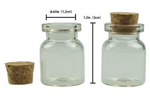SIZE AND PACKAGE: approx. 0.87 x 1.2 inches ( W x H ). A value pack includes 40 small glass bottles of 5ml with 40 cork stoppers.