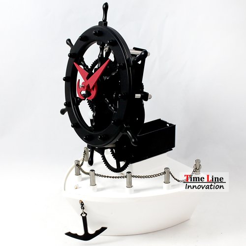 - Title : Timeline Sail Boat Bow Ship Wheel Moving Gear Desk Clock /Black & White