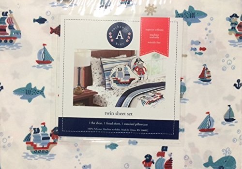 AUTHENTIC KIDS PIRATE SHIPS, WHALES, SHARKS TWIN SHEET SET