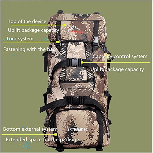 -. Feature : Product overview: mountaineering bag, nylon material, capacity 90L / Army Military Tactical Rucksack Backpack Sport / Back: Thicken Breathable mesh Sponge. Comfortable and durable for your most satisfactory pair of hiking backpackBack: Thicken Breathable mesh Sponge. Comfortable and durable for your most satisfactory pair of hiking backpack / Shock absorption shoulder belt: All the shoulder and waist belts use the widen design, strong and wear resistance, make the waist force more evenly and reduce the shoulder, neck and spine to bear weight / PERFECT for military, sports activity, gym, tennis, fishing, hunting, camping, hiking and many outdoor activities