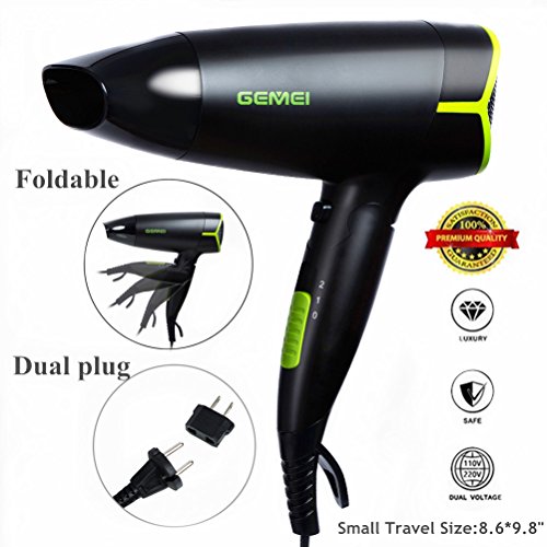 Professional Folding Blow Dryer for Travel,1300 to 1500W Negative Ion Hair Dryer Dual Voltage Lightweight,Mini 9x10 Inch Size (Black), Valentine Day Gifts...