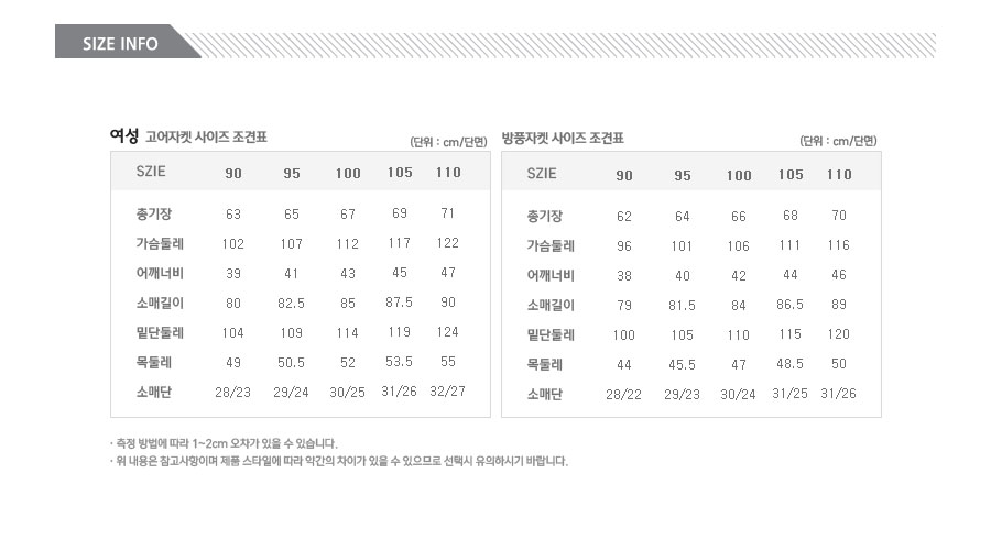 | 사이즈 | ;90, 95, 100, 105 |