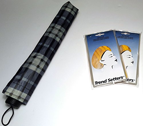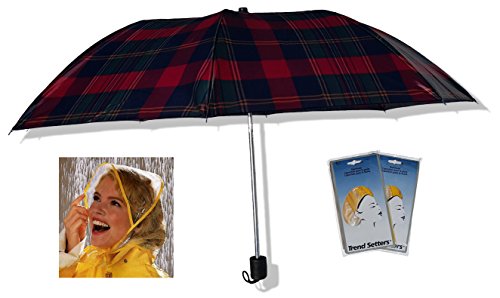 -. Brand : Trend Setters -. Department : mens -. Feature : Bundle Contains 1 Umbrella and 2 Poly Rain Hoods (Bonnets) / Nylon umbrella is 36 inches in diamenter when open / Rain Hood is comfortable to wear, one size fits all with adjustable ties at the bottom / Each Umbrella Folds down into a small 13 inch package and only weighs 6.5 oz / Great for rainy days to protect your hair and clothes -. PackageQuantity : 3 -. ProductGroup : Apparel -. ProductTypeName : LAGE -. Size : One Size -. Title : Lightweight Umbrella with Clear Poly Rain Hood Bundle