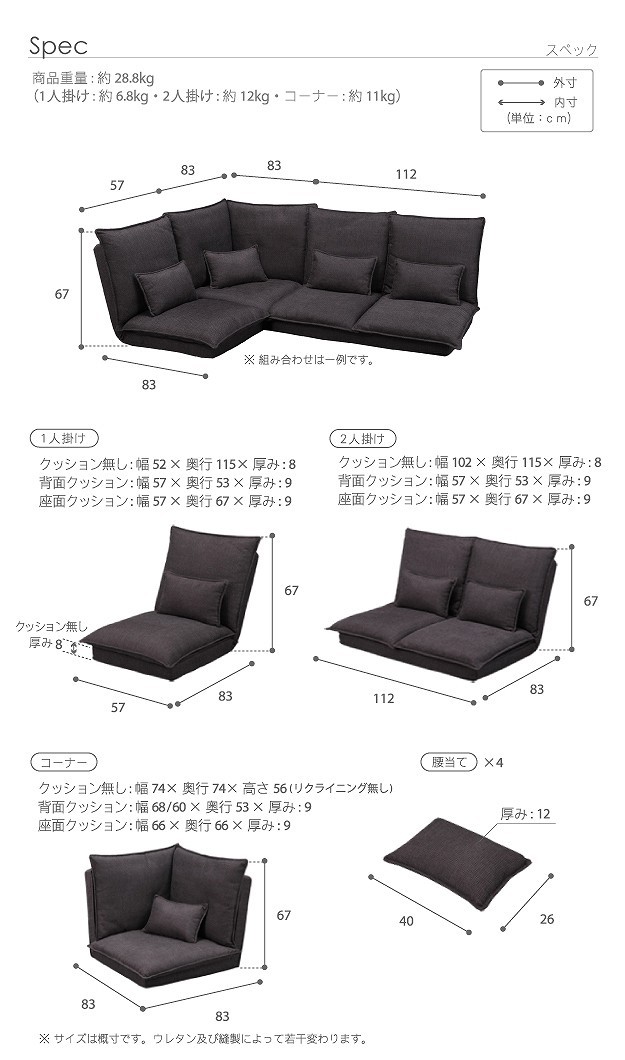 (コーナー)幅83x奥行83x高さ67cm・約11kg