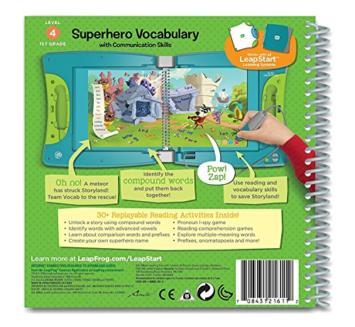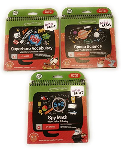 -. Feature : SET OF 3 LeapFrog LeapStart books (Superhero Vocabulary, Space Science, and Spy Math) / Superhero Vocabulary with Communication Skills (Level 4, 1st Grade), best for inquisitive 5-7 year olds / Space Science with Thinking Like a Scientist (Level 4, 1st Grade), best for inquisitive 5-7 year olds / Spy Math with Critical Thinking (Level 4, 1st Grade), best for inquisitive 5-7 year olds / Works with ALL LeapStart systems (Sold separately)