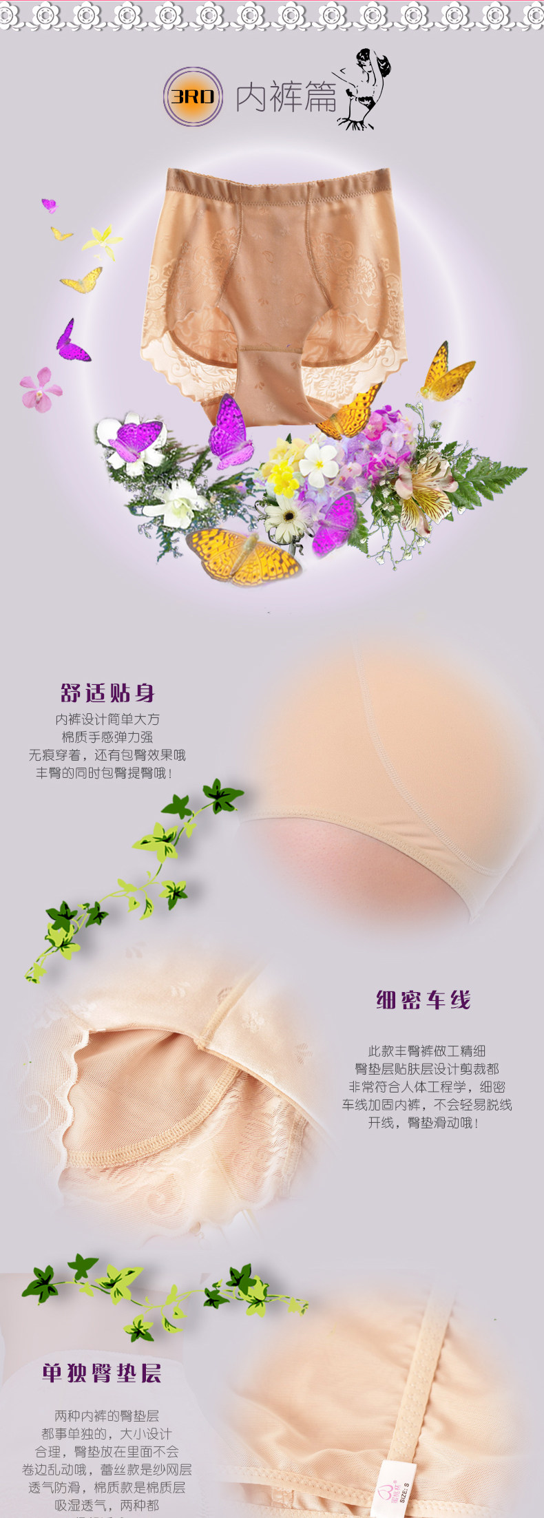 Three, flat for hip, hip is the baby a petite, no hip mm design, special underwear mat is original VE magic silica gel inside abundant buttocks pad, become warped on hips plump and effect. Black pants beginning to wash will rub off a little bit, pat skin drops of mind mm oh, because the products are exported to give priority to, can't add fixing agent, or pass the export standards, in this special remind! First washing can add a little salt or rice vinegar, second good oh.