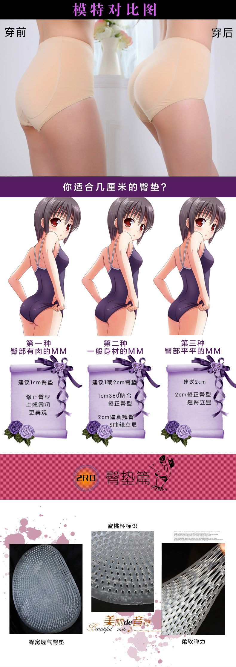 Middle thick, thin edge, and hip joint, can make your derriere look larger, buttocks, become warped on the moment. Buttocks no matter how you turned out to be, even if the buttocks thin and flat, as long as put on [] peach buttock, your hips will instantly plump, become warped, sexy beauty groove will soon appear. Peach hip building belongs to you