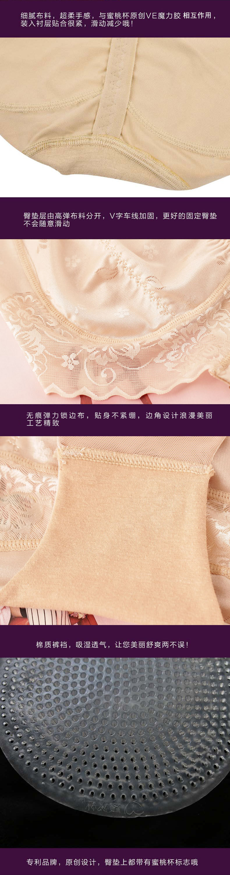 A, first of all, congratulations to pro found professional create abundant buttocks buttock boo us! Peach cup designed for curve crazy! Original patent launch honeycomb VE magic glue abundant buttocks silicone pad!!!!!! Granted utility model patent for invention, main characteristic is (more detailed features can have a look at the video above details page) :