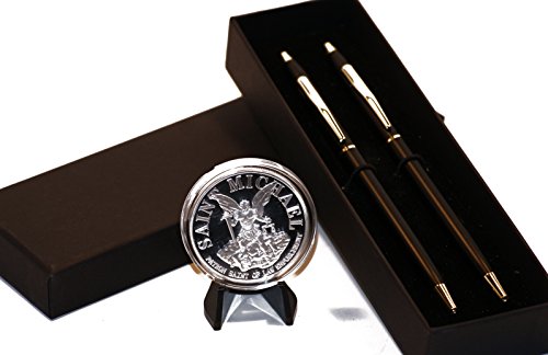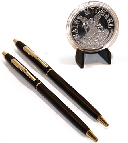 Classic Black and Gold Police Pens w/Silver Plated St. Michael Coin