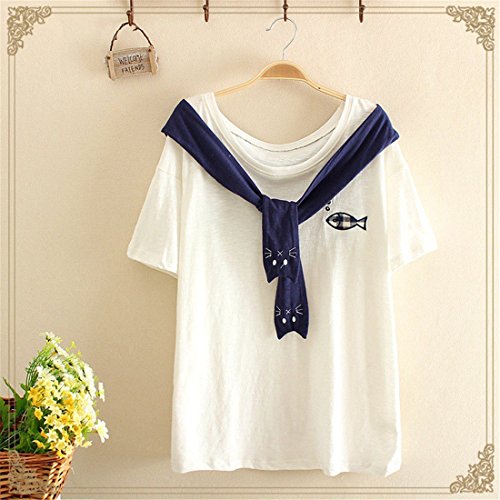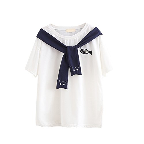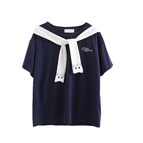 -. Title : Tシャツ 半袖 レディース 猫 プリント 可愛い 綿 丸首 ファッション シャツ フリーサイズ