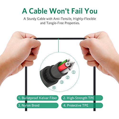 DURABLE&STURDY: it is with multiple protection, bulletproof kelvar fiber, high -strength TPE, nylon braid and protective TPE Jacket. This usb charging cable has good anti-stretching, anti-bending, high-flexible and tangle-free properties.