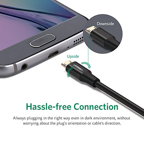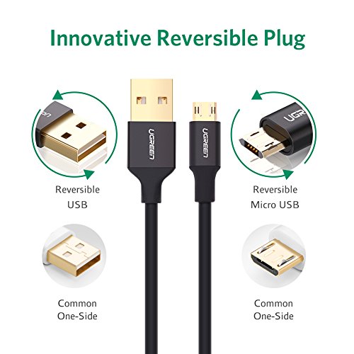 REVERSIBLE DOULE-SIDED CONNECTORS: innovative double-sided USB connectors simplifies the connection for the micro usb cable; Plug and unplug easily without checking for the connector orientation, truly hassle-free connection.