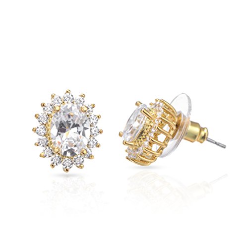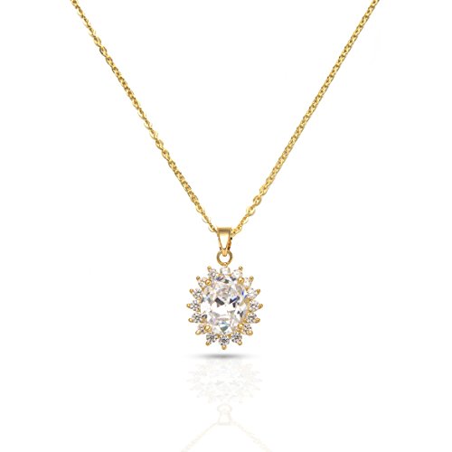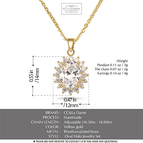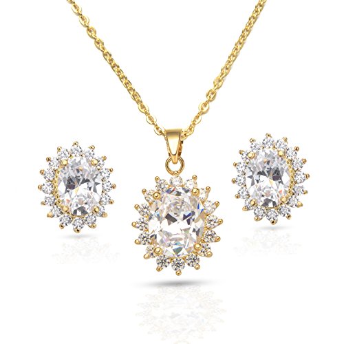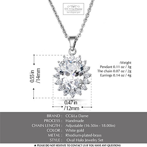 -. Title : Cubic Zirconia Oval Halo Stud Earrings and Pendant Necklace Jewelry Set,18 Inches