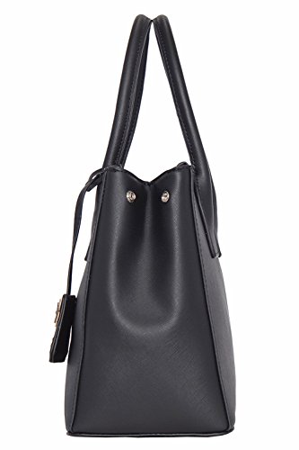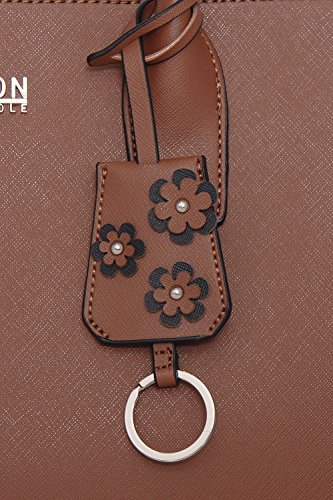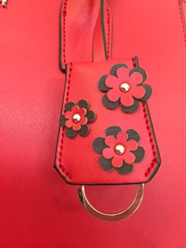 -. Feature : • Rich Saffiano Faux Leather. Triple Entry Design / • Snap Clip Closure for center section and 2 zipper Sections / • Beautiful Flower Design Keychain Ornament. Unsnap clip on sides to expand bags for more space / • 1 interior zipper pocket , 2 open pockets for extra storage / • Size 13" X 9.75" X 6" . Strap Drop = 9"