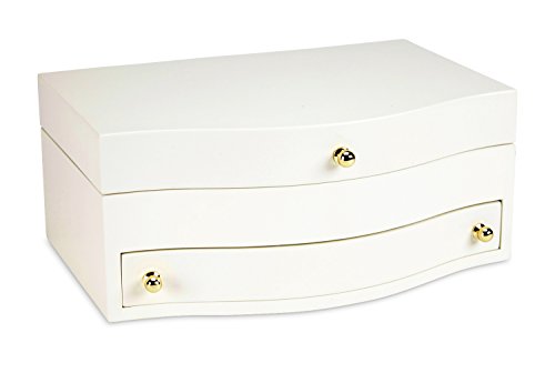 PRACTICAL STORAGE SOLUTION - This handcrafted wooden jewelry case is ideal for storing and organizing bracelets, rings, neckalces, and much more. Larger keepsakes can be safely stored and accessed with the lower pullout drawer. Top section carefully compartmentalized to maximize space.