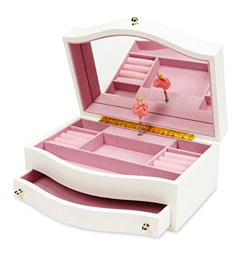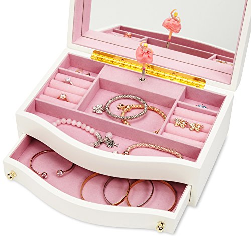 STUNNING DESIGN - Charming girls musical jewelry box carefully designed with hourglass curvature and elegant gold hardware finish. The perfect gift for your princess of any age.