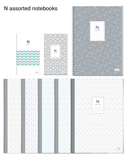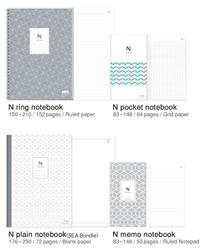 Each N assorted notebooks package(B5 and smaller) contains 1 N pocket notebook(83mm*148mm), 1 N memo notebook (83mm*148mm), 1 N ring notebook (150mm*210mm), and 5 N plain notebooks (B5, 176mm*250mm)
