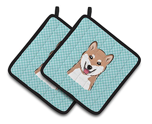 Caroline's Treasures Checkerboard Blue Shiba Inu Pair of Pot Holders BB1163PTHD, 7.5HX7.5W, Multicolor