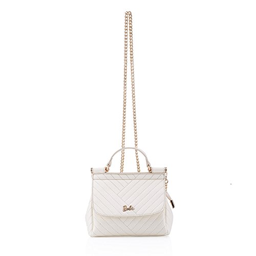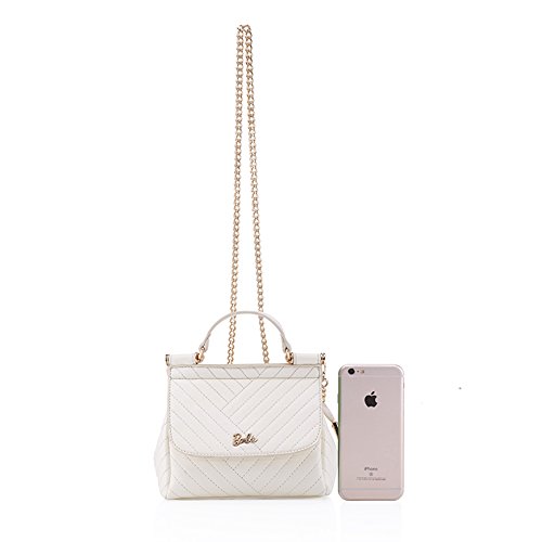 Barbie Elegant Series Simple Casual V-shape White Leather Women Shoulder Bag Handbag&Cross-body Bag BBFB317