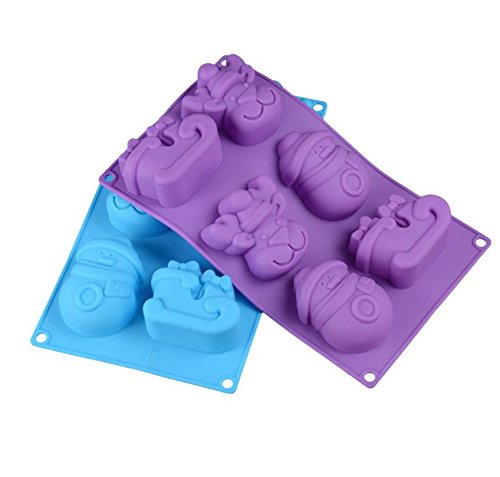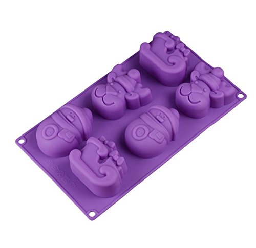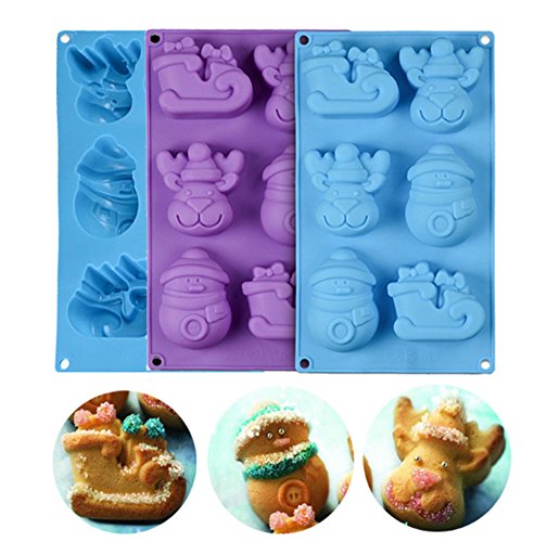 Gathere 6 Cavity Christmas Snowman Reindeer Sleigh Shape Silicone Mold for Jelly Biscuits Soap Chocolate Candy Cupcake Ice Cube Muffin Pan Baking Mould
