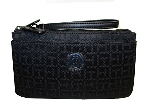 Tommy Hilfiger Wristlet Wallet Bag Black Canvas Double Zip