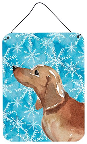 Caroline's Treasures Red Tan Dachshund Winter Metal Print, 16" x 12", Multicolor