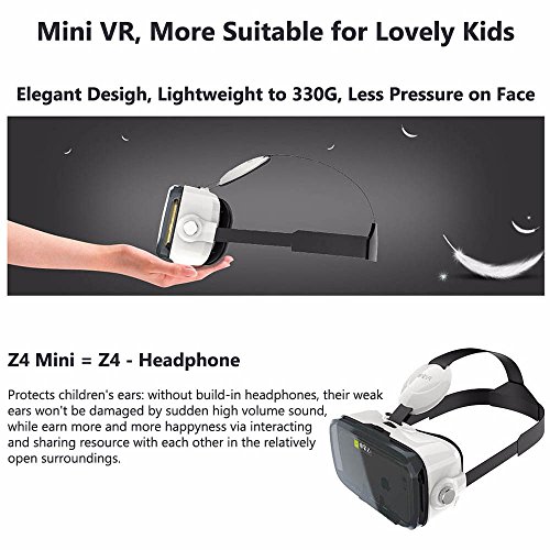Studio : BOBOVR Publisher : BOBOVR Binding : Electronics Product Description Why you need a VR? Tired with disturbed 2D movies or annoyed flat games? WASTE Hundreds to pay for cheaper and cheaper, more and more universal VR Tech? Are you a near-sighted below 800 ° and would like to use VR Unit without your glasses? Is there a VR machine more suitable for the kids? Your smart phone smaller than others' and can't find the VR set for it? Our VR Headsets are just your choice. What makes our VR special? *Now, set our virtual reality goggles as an entry level one, 3D VR viewer is really a private cinema for you to watching IMAX 3D movies at home. There are a wide variety of VR games and other 3D experiences at the same time. *Less than $30.00 on sale, our VR goggles offers you awe-inspiring, fantastical games, immersive stories and endless possibilities. Get all what you can from the ones cost hundreds. *The VR device fits almost all people, suitable for 0-800 degrees myopia and 0-400 degree hyperopia. *Mini VR helmet headset without headphones, protects kids from damage by sudden high volume sound; more lightweight to 330g, less pressure while more comfortable. *Our VR helmet fits most iOS, Android and Windows smartphones, which screen size within 3.5" to 6.2", range in 4.7"-6.2" maybe better, the phone body size is not bigger than: width 85mm /33.46", length 160mm /63.00", or width 82mm /32.30", length 163mm /64.17". Specifications: Model: BOBOVR Z4, BOBOVR Z4 Mini (Selectable) Material: ABS, Foam, PC Color: White, Black (Selectable) Package Included: 1 x BOBOVR Mini 3D Virtual Reality Glasses Headset 1 x User Manual 1 x Clean Cloth