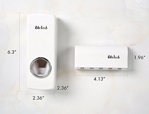 iLifeTech Hands Free Toothpaste Dispenser Automatic Toothpaste Squeezer and Holder Set (5 Brush Holder), White