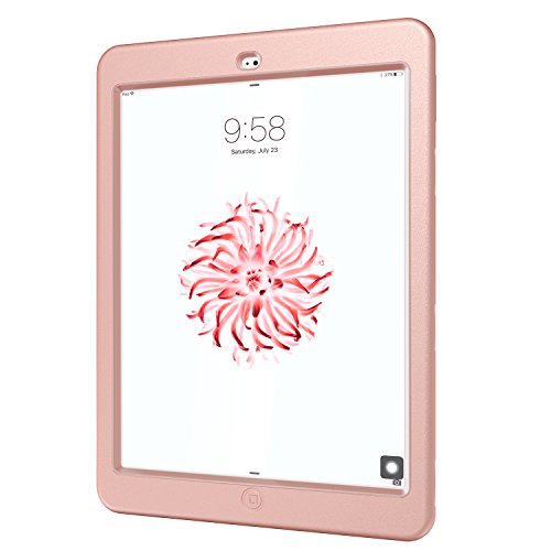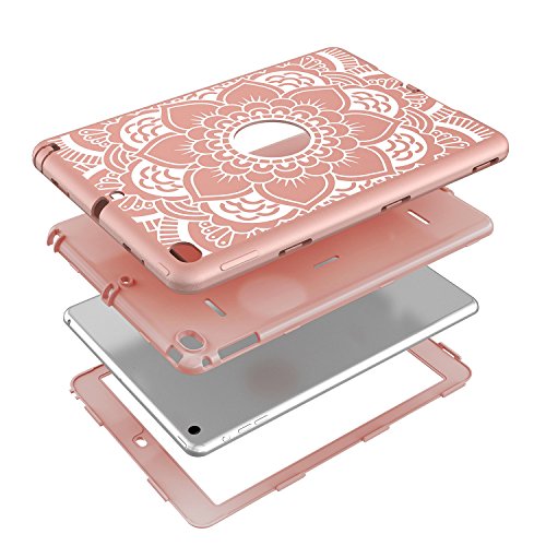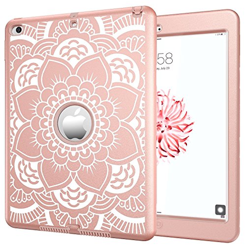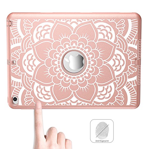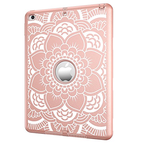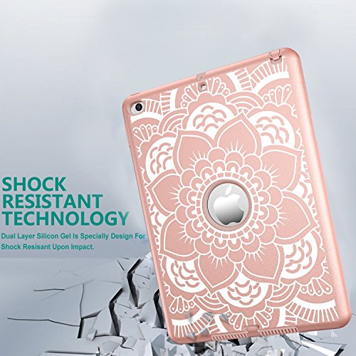 iPad Air 2 Case, Hocase Rugged Shock Absorbent Hybrid Dual Layer Hard Rubber Protective Case Cover with Floral Design for Apple iPad Air 2nd Generation 2014 Release - Rose Gold Flower
