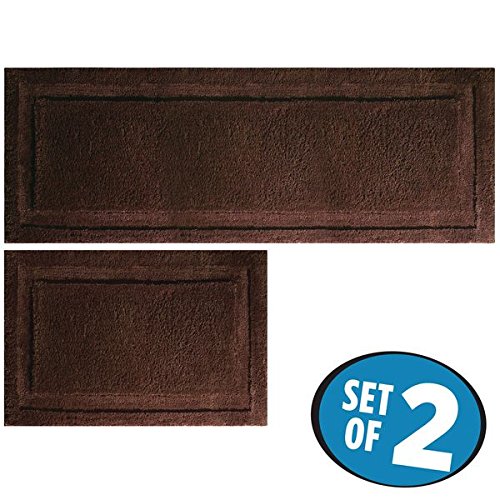 mDesign Long and Standard Microfiber Accent Shower Rug Combo for Bathroom - Set of 2, Chocolate