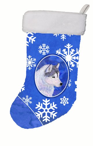 Caroline's Treasures SS4602-CS Siberian Husky Winter Snowflakes Christmas Stocking, 11 x 18", Multicolor
