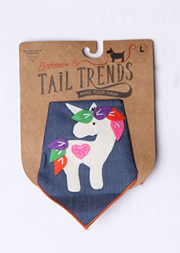 -. Binding : Misc. -. Brand : Tail Trends -. Color : Pink -. Feature : Designer Handmade Felt Applique on 100% cotton fabric / Stitched edge for longer wear and is machine washable / Great affordable Gift for your furry friend / Medium Size fits 8"-15" neck line, dimensions are 21 x 6 inches (L x W) / Large Size fits 16"-24" neck line, dimensions are 25 x 9 inches (L x W) -. Label : Doggone Cute Inc. -. Manufacturer : Doggone Cute Inc. -. PackageQuantity : 1 -. ProductGroup : Pet Products -. ProductTypeName : PET_SUPPLIES -. Publisher : Doggone Cute Inc. -. Size : Large -. Studio : Doggone Cute Inc. -. Title : Tail Trends Unicorn Dog Bandana for Medium to Large Sized Dogs - 100% Cotton