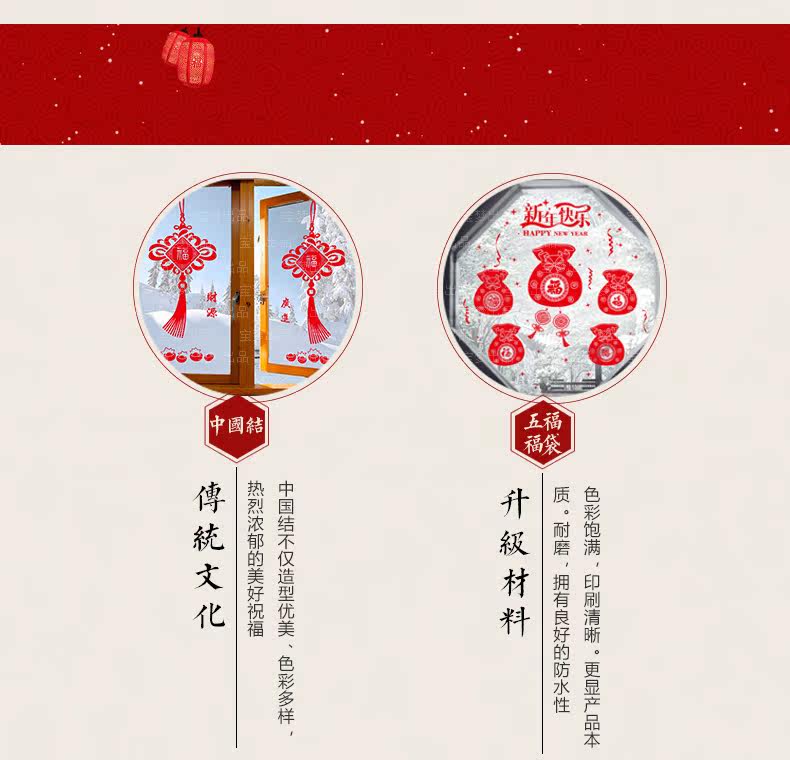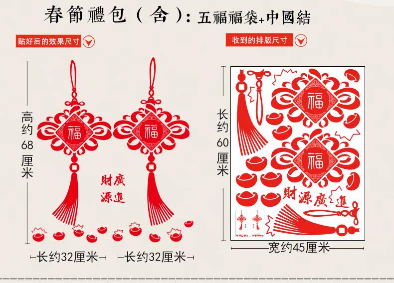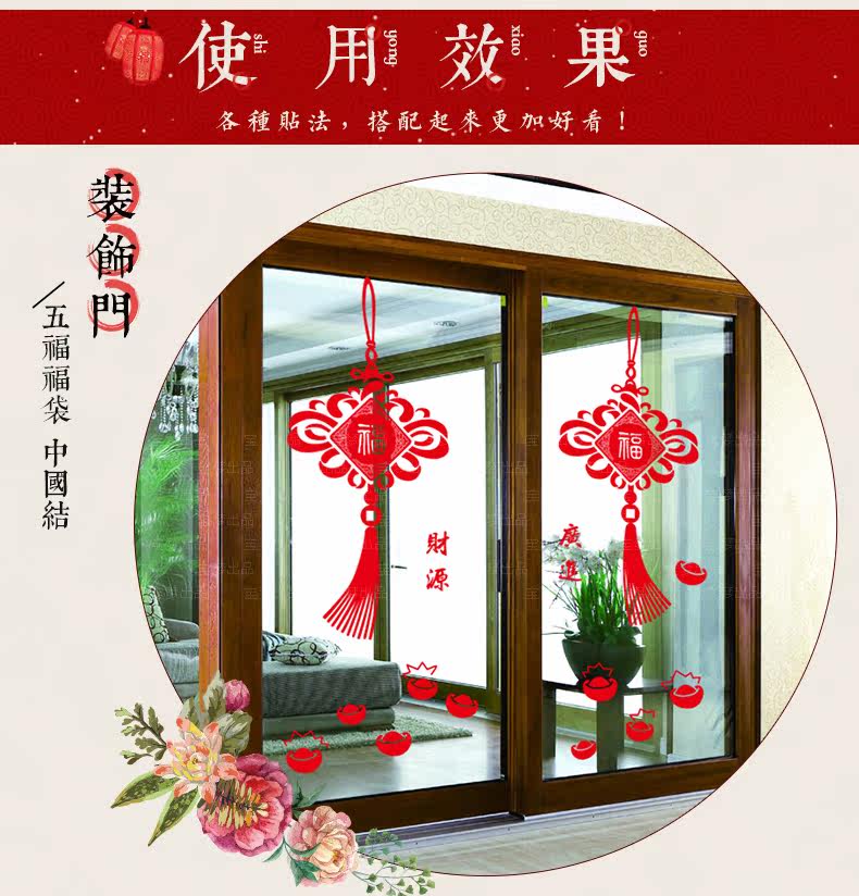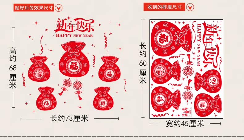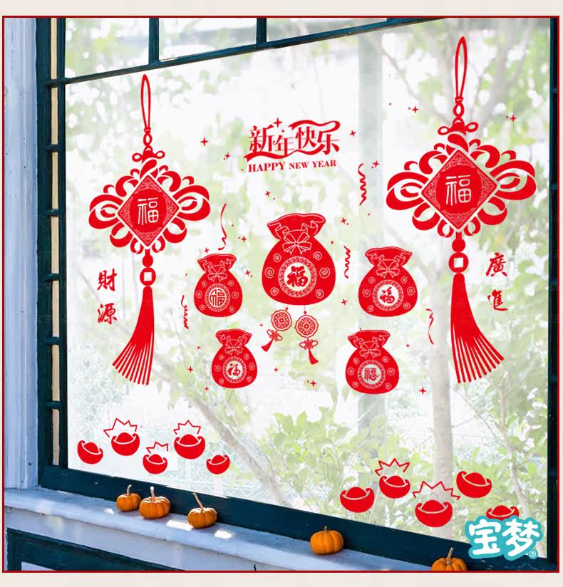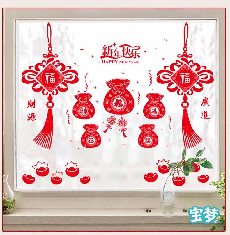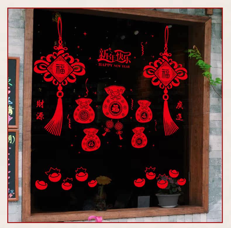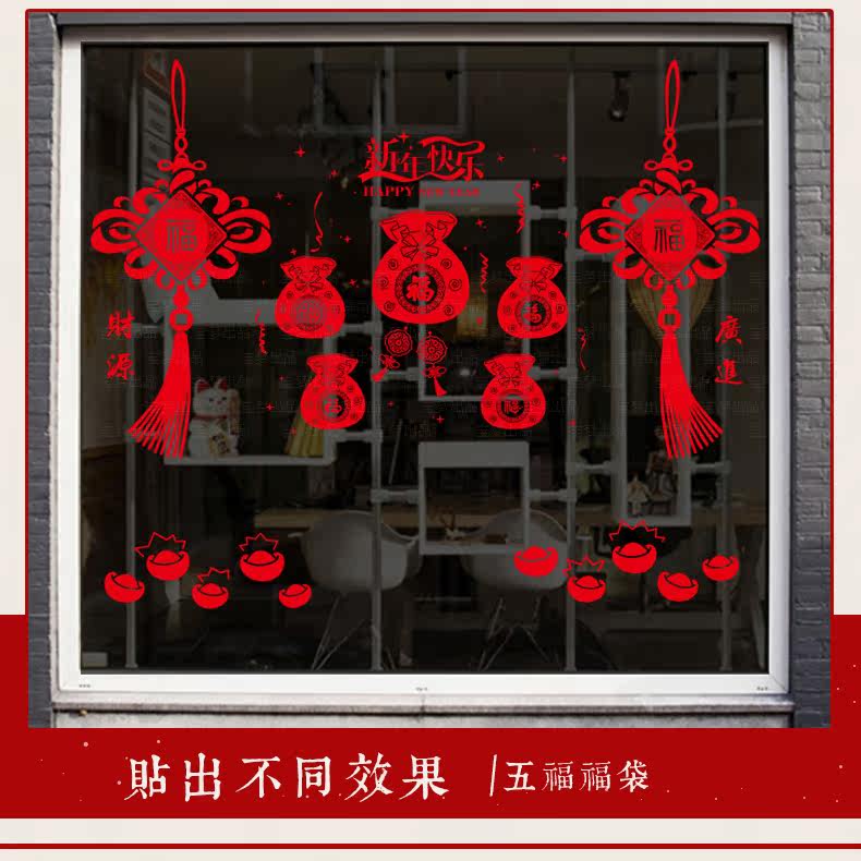 新年店铺橱窗户窗花玻璃门福袋贴画春节装饰中国结墙纸贴