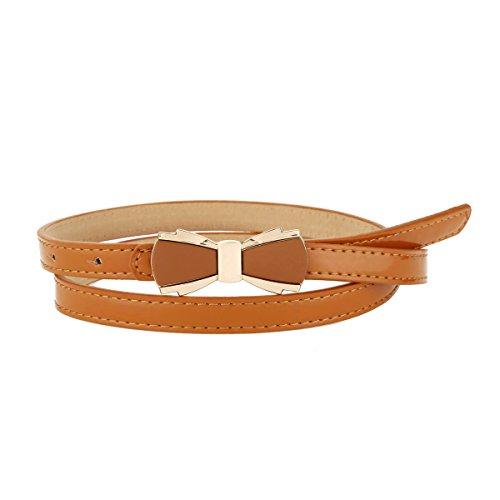 -. Binding : Apparel -. Brand : Damara -. ClothingSize : Onesize -. Department : womens -. Feature : Simple and Elegant belt for any occasion. / olid Colors to with a rainbow of fashion colors to enhance your outfits. / High quality narrow faux leather belt with a metallic bowtie buckle! / Give you the stylish look and also good for everyday wear / Measurement approximately:Length: 100CM (39.4in) Width: 1.5CM (0.6in) -. ProductGroup : Apparel -. ProductTypeName : ACCESSORY -. Size : One Size -. Title : Damara Womens Bowknot Metal Clasp Buckle Sweet Thin Waist Belt