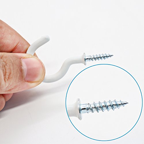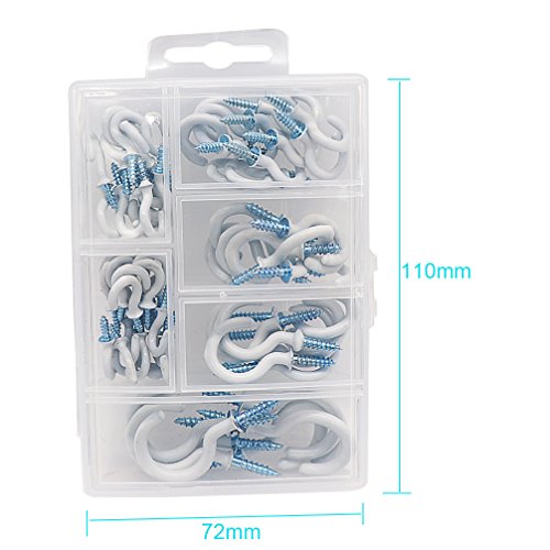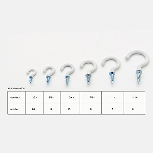 Esfun Vinyl Coated Cup Hooks Ceiling Hooks Screw Hooks Mug Hooks Holder Assortment Kit, 6 Sizes, 70 Pieces White