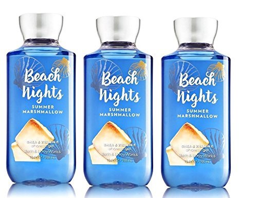 -. Binding : Misc. -. Brand : Bath & Body Works -. EAN : 0654554227736 -. Feature : Bath Body Works Beach Nights Summer Marshmallow Shower Gel Lot of 3 / Wash your way too softer, cleaner skin with a rich, bubbly lather bursting with fragrance. Moisturizing Aloe and Vitamin E combine with skin-loving Shea Butter in our most irresistible, beautifully fragrance formula. / 3 Bottles of 10 fl oz / 295 mL each -. IsAdultProduct : 0 -. Label : Bath & Body Works -. Manufacturer : Bath & Body Works -. MPN : Marshmallow Nights -. PackageQuantity : 1 -. PartNumber : Marshmallow Nights -. ProductGroup : Beauty -. ProductTypeName : BEAUTY -. Publisher : Bath & Body Works -. Studio : Bath & Body Works -. Title : Bath and Body Works Beach Nights Summer Marshmallow Shower Gel Full Size Lot of 3 -. UPC : 654554227736