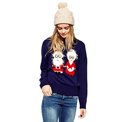 -. Binding : Apparel -. Brand : Urban Fashion -. Color : Navy -. Department : womens -. Feature : 50% Cotton Yarn Knitted Sweater / Loose fit sweater, comforatble to wear, featured round collar and long sleeves / Embroided Mr. and Mrs. Claus / Please read the Size Chart information in details pictures before purchase the item / 2015 New Arrival -. ProductGroup : Apparel -. ProductTypeName : SWEATER -. Title : Urban Fashion Women's Christmas Mr and Mrs. Claus Sweater