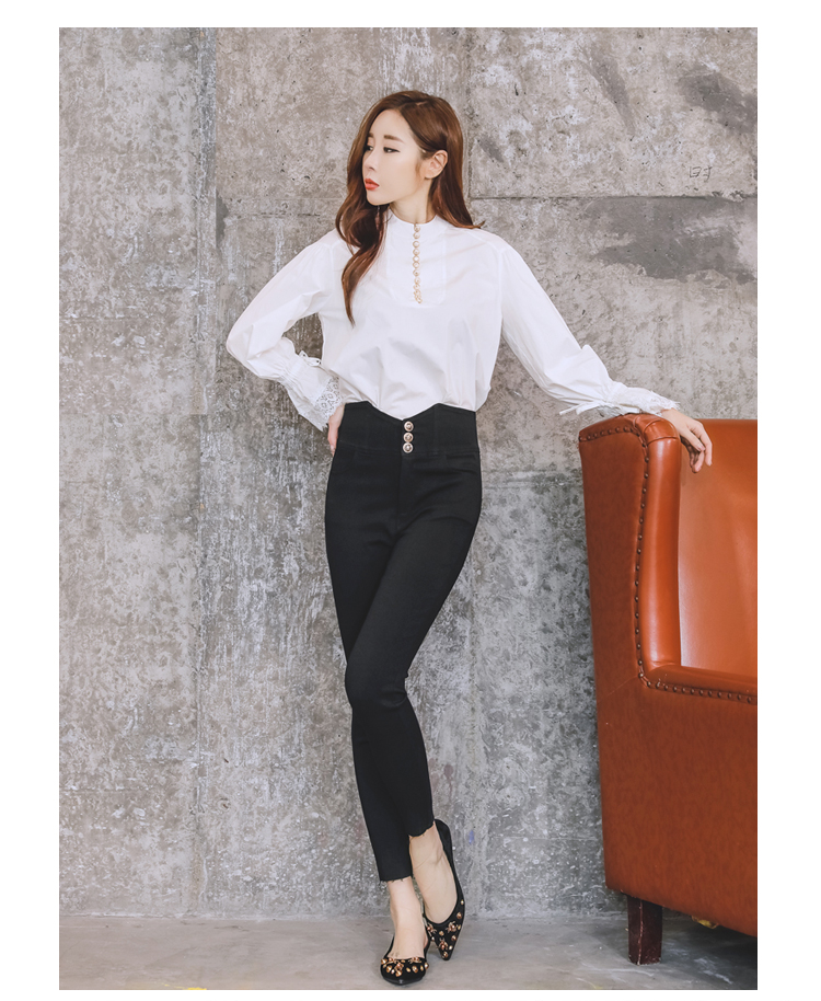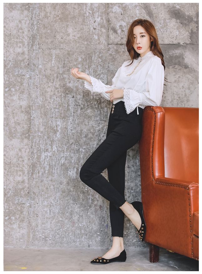 フロントボタンデザインのフリル袖ブラウスです。