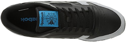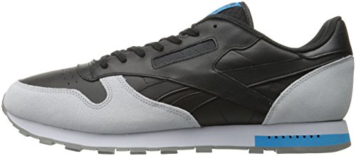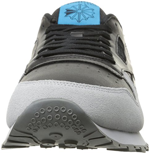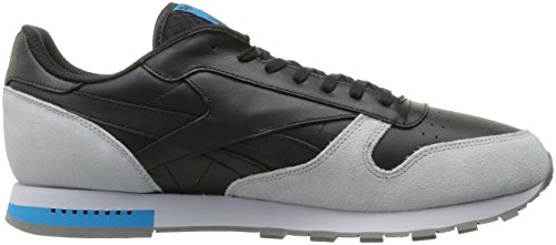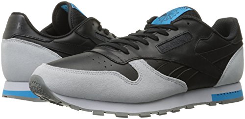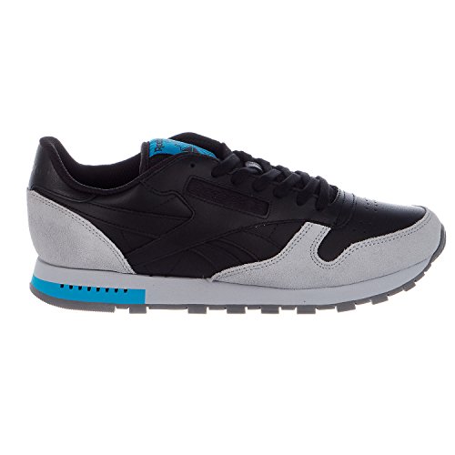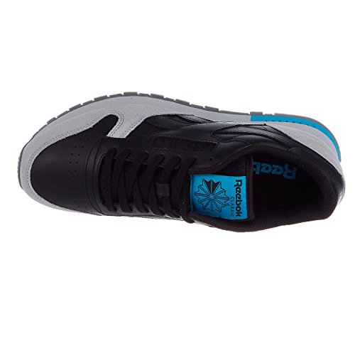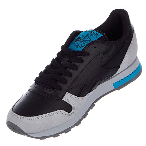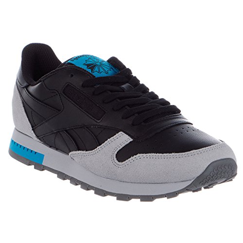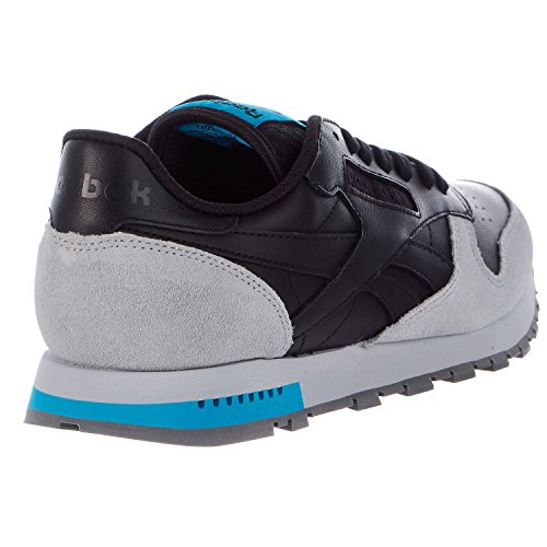 Reebok Men's CL Leather Grey Fashion Sneaker, Black/Cloud Grey/Alloy/Caribbean Teal, 9.5 M US